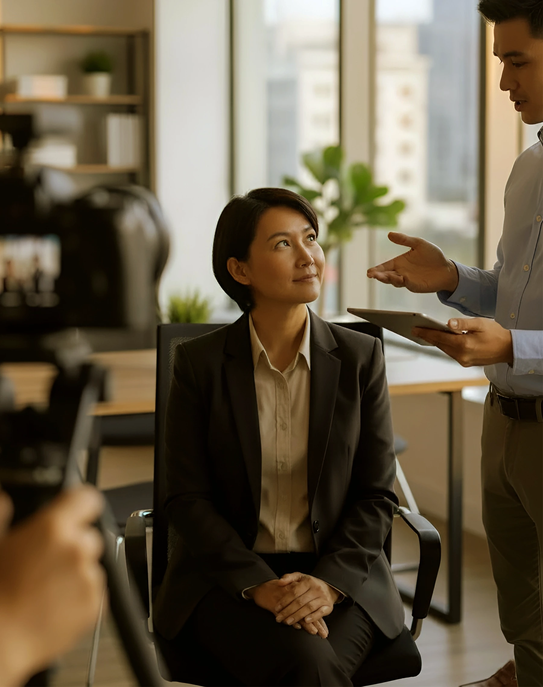 We prepare your spokesperson through on-camera simulations, hostile-interview drills, and panel preparation. Sessions are recorded and reviewed using AI transcription so your team can track improvement over time.